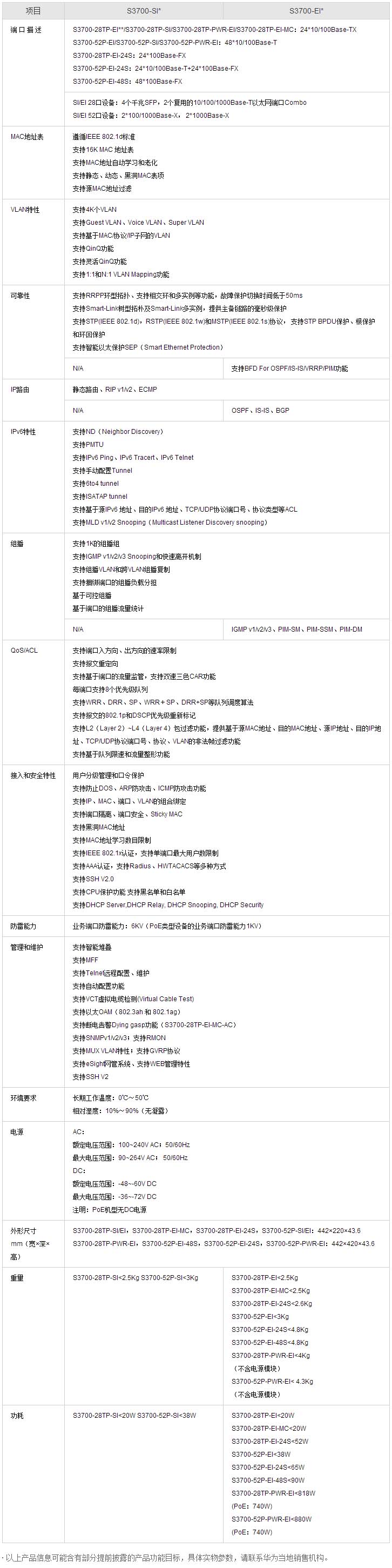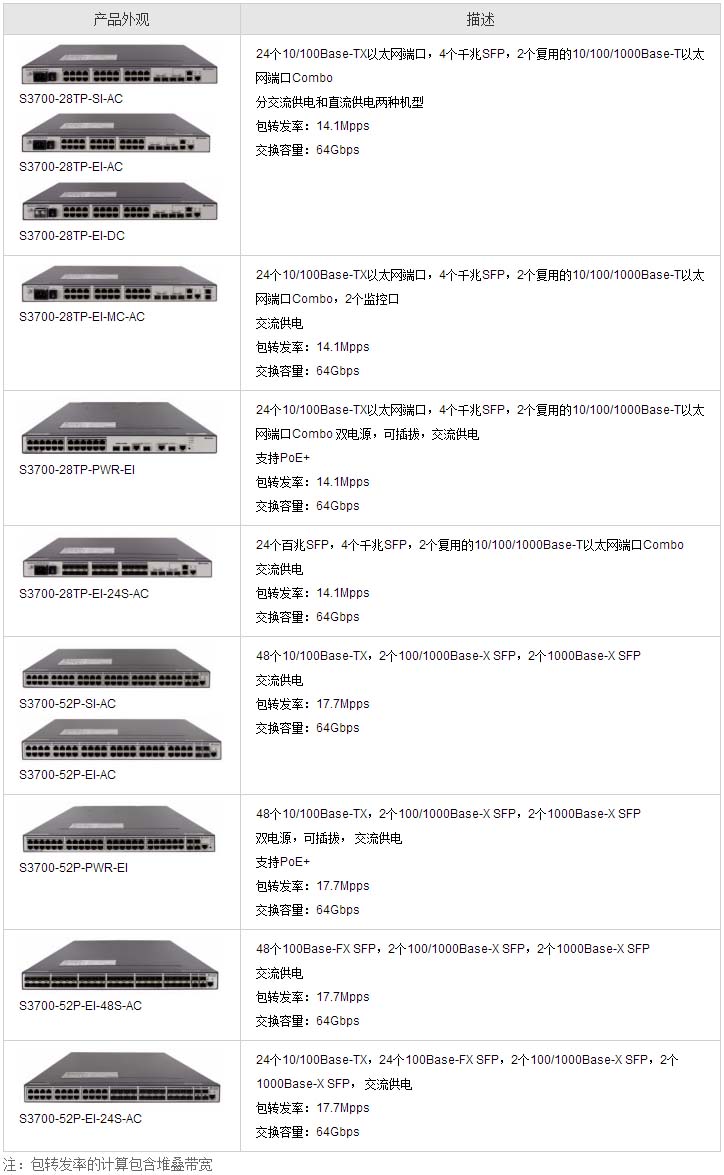 S3700系列交換機為盒式産品設備,提供标準版(SI)和(hé)增強版(EI)