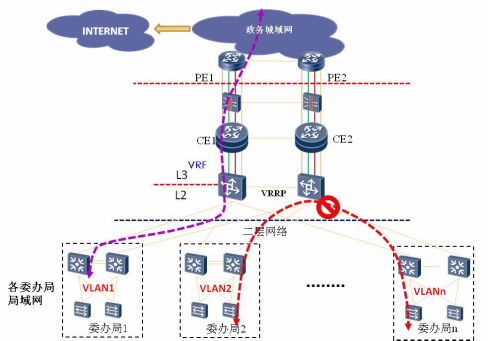 VLAN、MPLS VPN技(jì)術(shù),實現部委間(jiān)業務縱向隔離