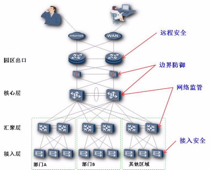 接入安全:終端安全接入控制(zhì)(NAC)、用戶隔離、端口隔離。