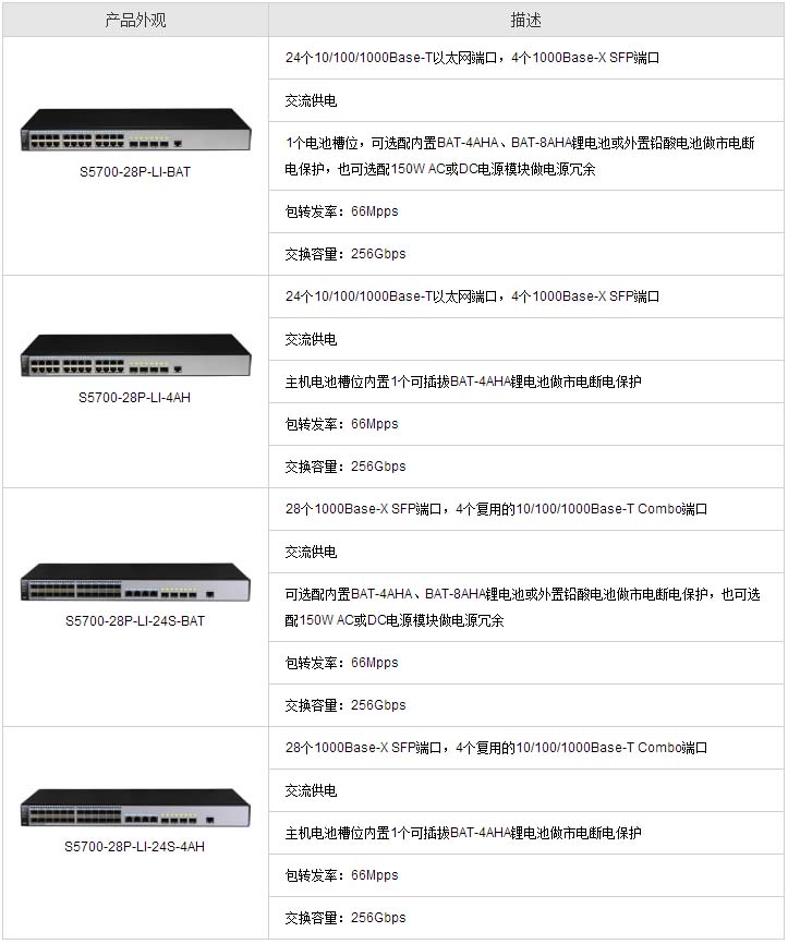 S5700-LI-BAT電(diàn)池交換機是業界首創的內(nèi)置蓄電(diàn)池交換機,可(kě)實現電(diàn)池狀态可(kě)視(shì)化管理(lǐ)。主要應用于網絡接入層不穩定、頻繁斷電(diàn)的場(chǎng)景。網絡接入層具有(yǒu)分散部署的特點,如果采用高(gāo)品質的UPS作(zuò)為備電(diàn)電(diàn)源成本較高(gāo)、占用空(kōng)間(jiān),而低(dī)成本的UPS或者外置鉛酸電(diàn)池存在可(kě)靠性和(hé)安全性低(dī)、占用空(kōng)間(jiān)、使用壽命短(duǎn)等問題。華為公司推出的此款創新型電(diàn)池交換機可(kě)以很(hěn)好地解決網絡接入層市電(diàn)頻繁斷電(diàn)情況下的供電(diàn)問題。
