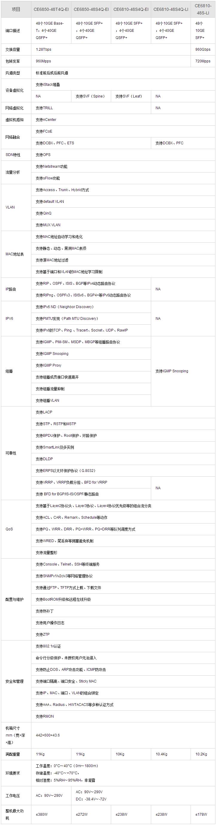 1.28Tbps交換容量,業界最高(gāo)性能(1U ToR);960Mpps轉發性能,L2/L3全線速轉發;