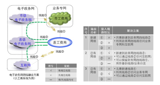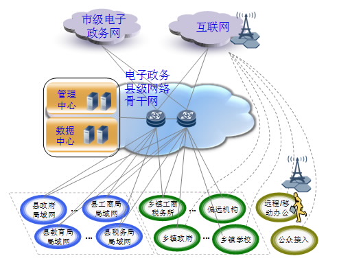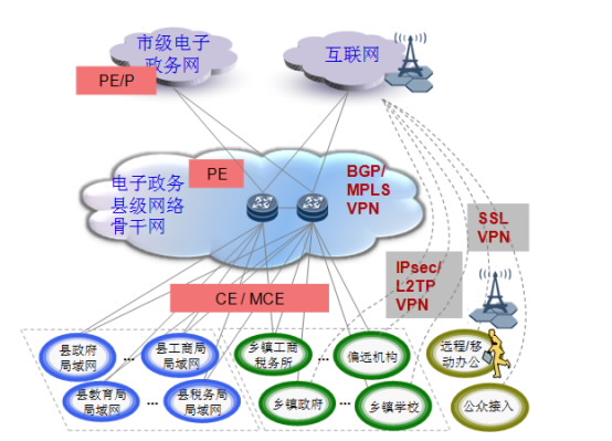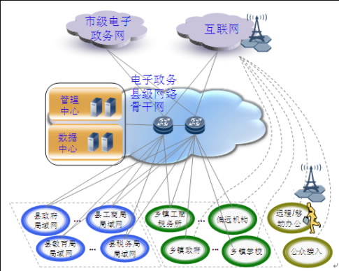 縣級電(diàn)子政務網絡需要對分屬不同部門(mén)或業務系統的現有(yǒu)網絡資源進行(xíng)整合,而不同網絡的建設情況和(hé)接入需求不同,電(diàn)子政務網需要提供平滑過渡或升級的解決方案。
