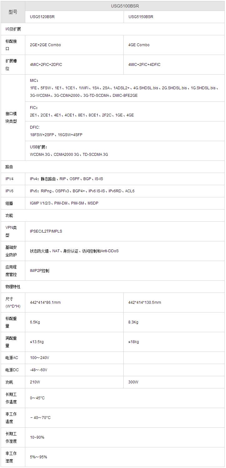 華為USG5100BSR安全路由網關專為滿足中型企業、大(dà)企業分支機構的高(gāo)業務轉發、高(gāo)可(kě)靠性的需求而設計(jì)。該産品采用多(duō)核硬件和(hé)多(duō)線程并行(xíng)處理(lǐ)技(jì)術(shù)提供高(gāo)達1500Kpps的轉發能力,通(tōng)過模塊化的設計(jì)提供強大(dà)的擴展能力,保證企業業務的連續運行(xíng)并滿足企業未來(lái)發展需求。