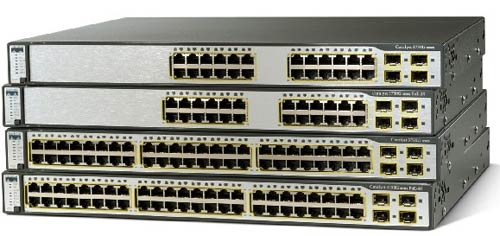 - Cisco Catalyst 3750G-24TS-1U—24個(gè)以太網10/100/1000端口和(hé)4條SFP上(shàng)行(xíng)鏈路,1機架單元(RU)高(gāo)