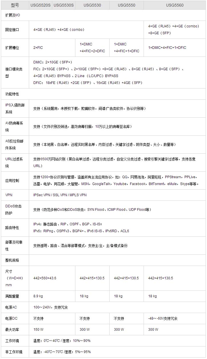 USG5500系列産品包括:USG5520S,USG5530S,USG5530,USG5550,USG5560等五個(gè)型号産品。均為模塊化設備,提供多(duō)個(gè)擴展槽,支持多(duō)種I/O模塊選配。
